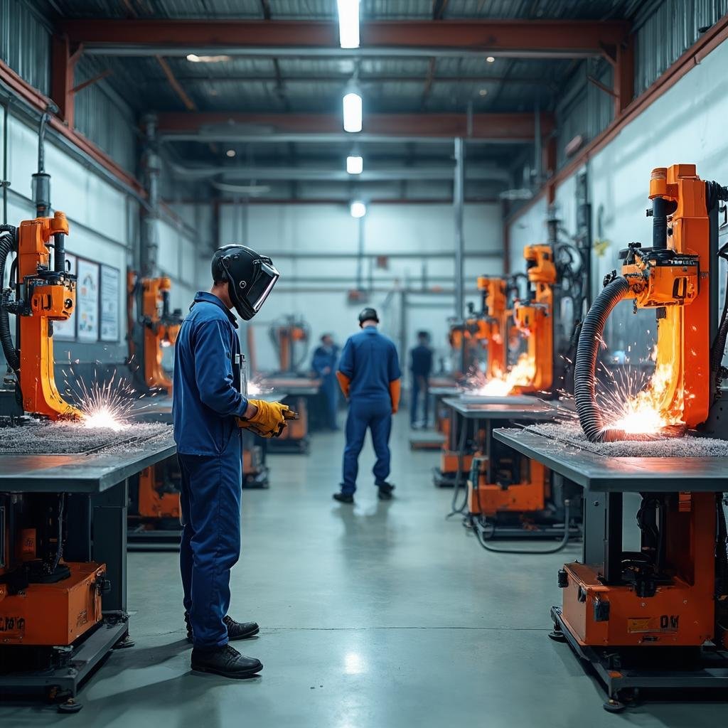 Large-scale fabrication yard with skilled workforce and heavy equipment